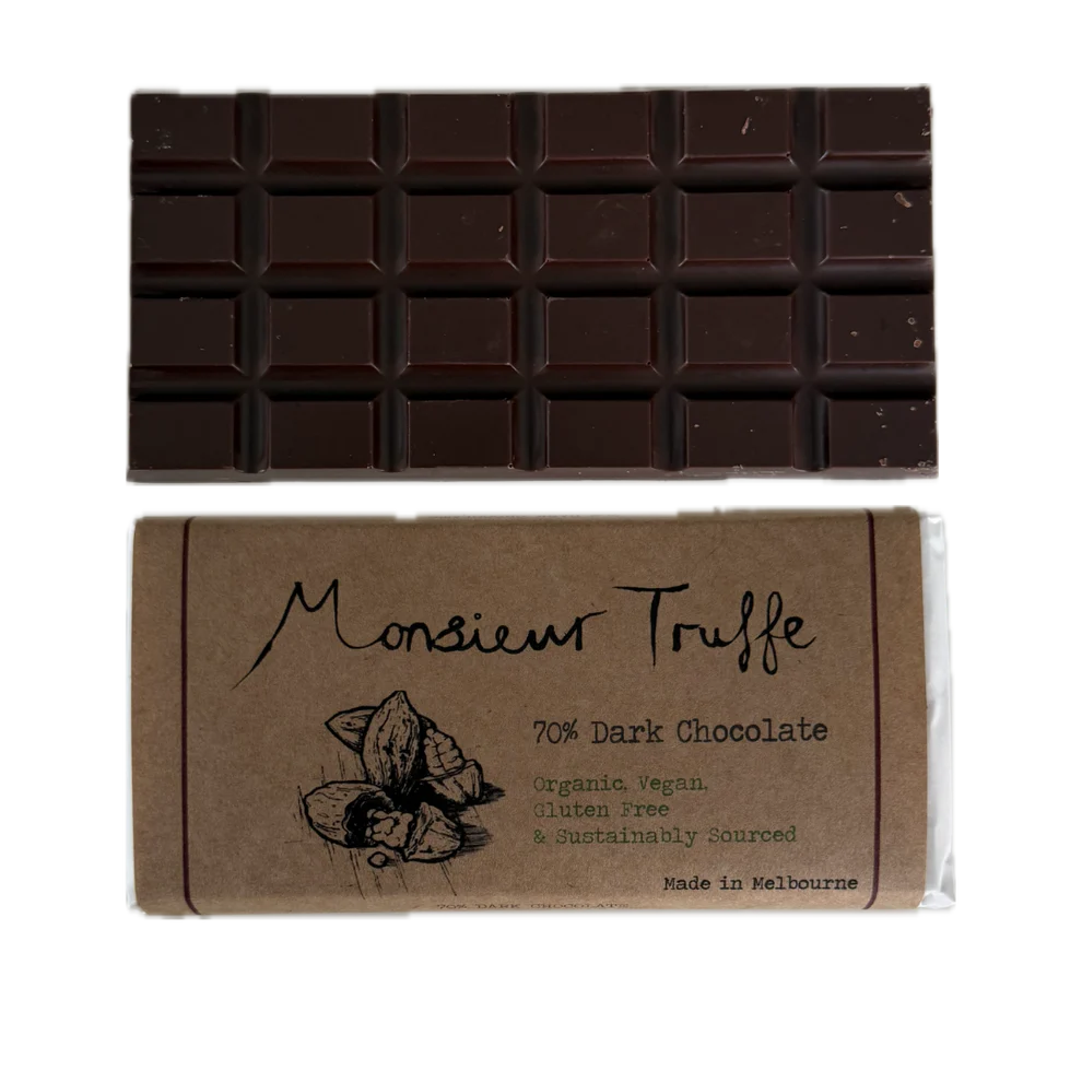 Monsieur Truffle's 70% Dark Chocolate is handmade, hand wrapped and Made in Melbourne